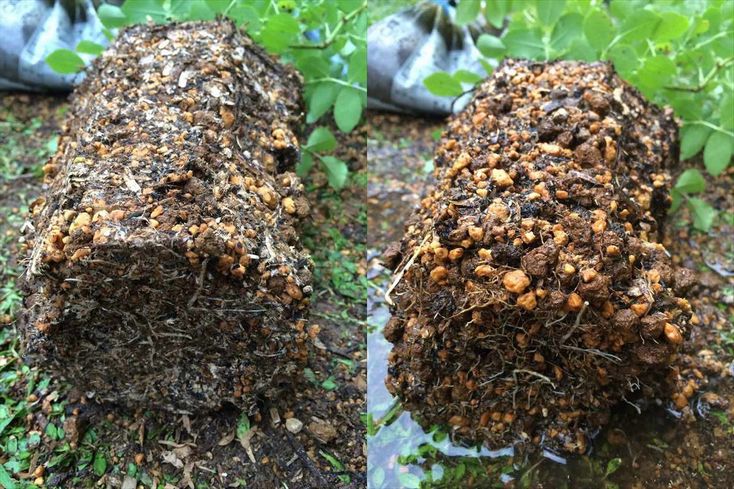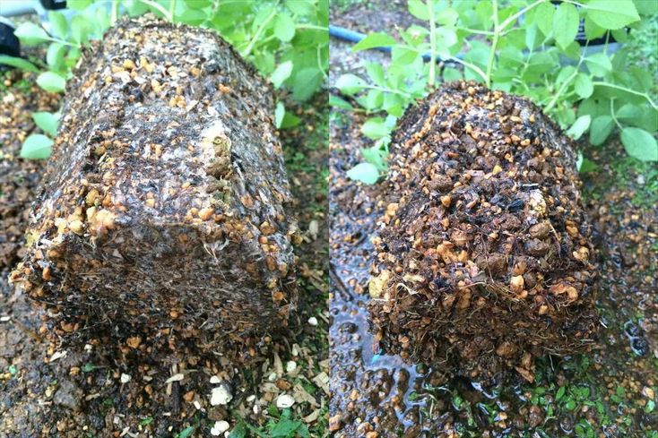 左が鉢から出した状態で、右がシャワーでざっと洗い流した写真です。